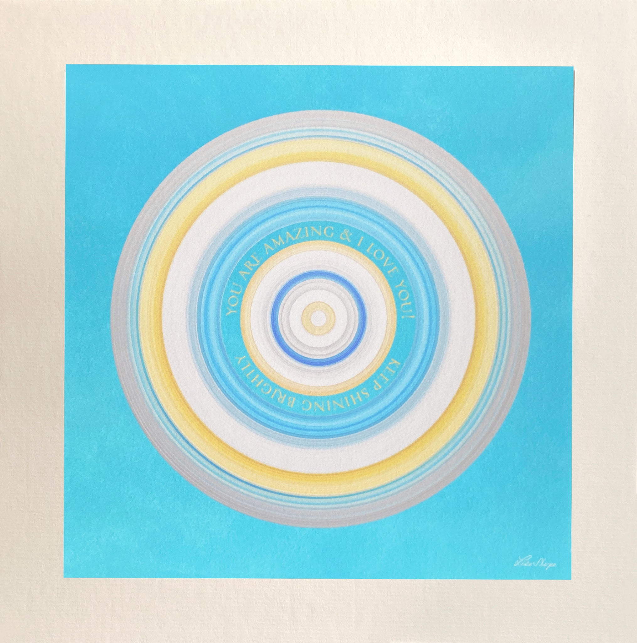 “You are amazing, and I love you. Keep shining brightly.” These words are a radiant reminder of love, encouragement, and the unique light we all bring to the world. Designed in a circular text that feels like an embrace, this print is a celebration of someone’s brilliance and a heartfelt way to say, “I see you, I believe in you, and I love you.”