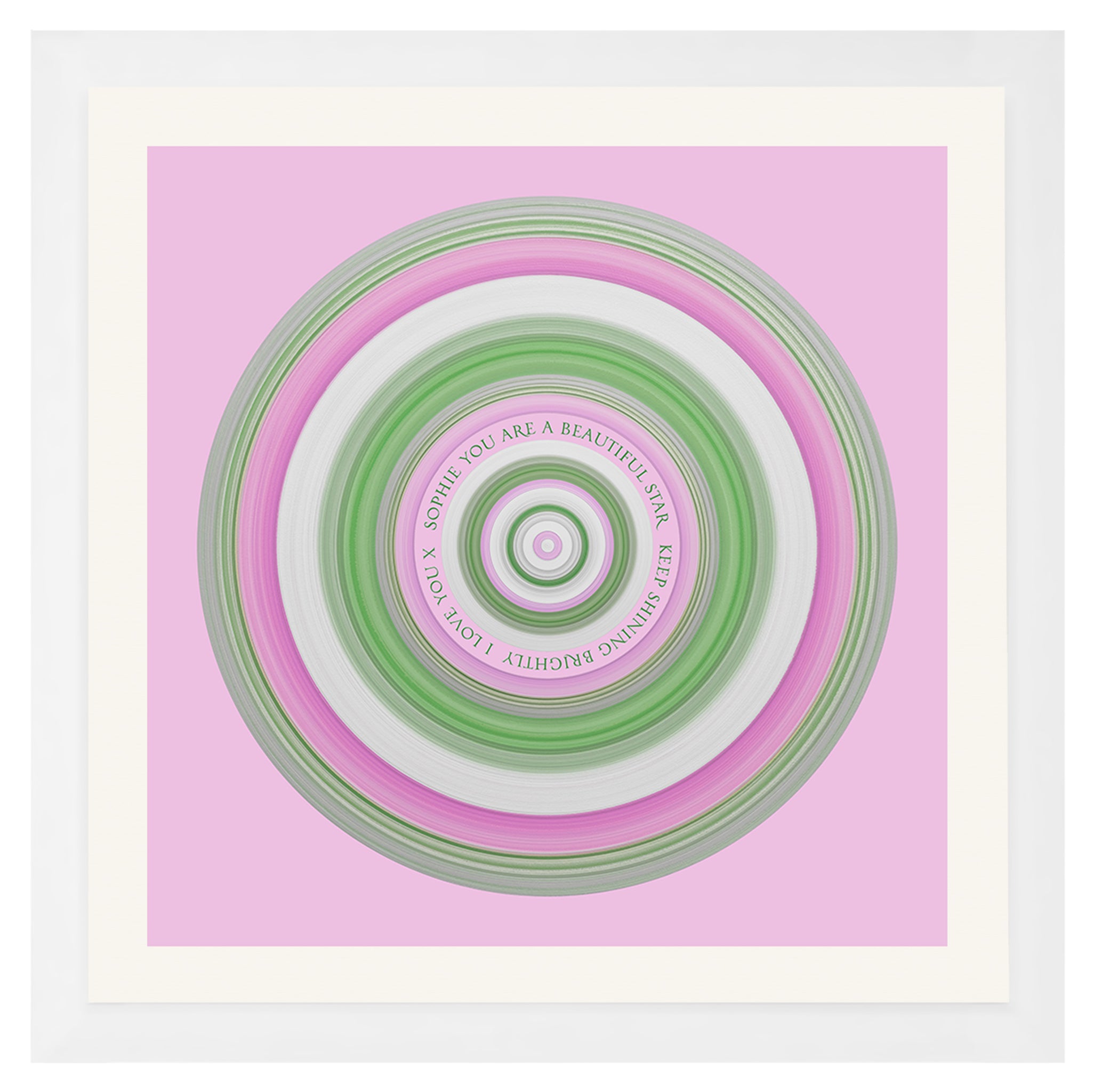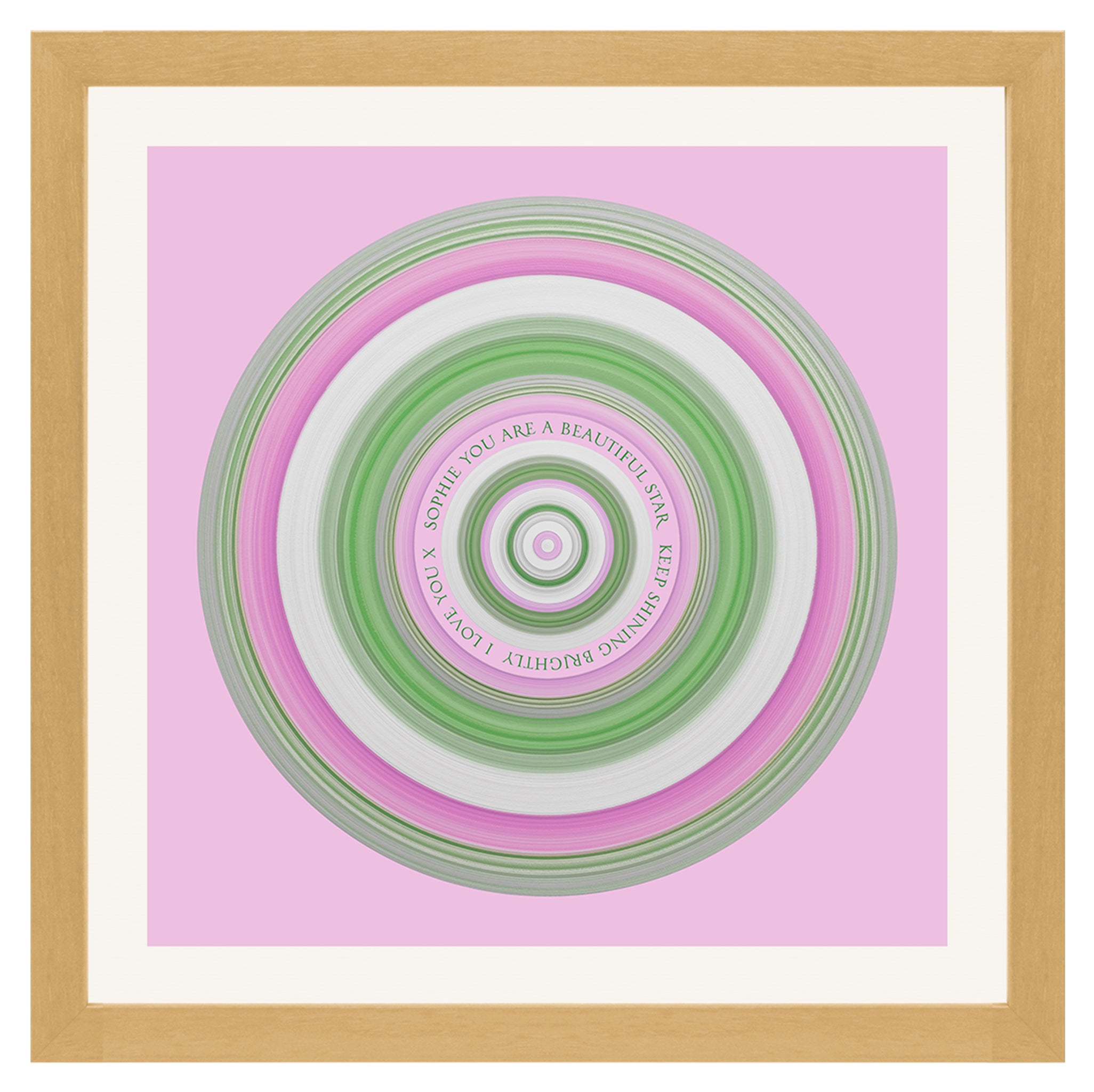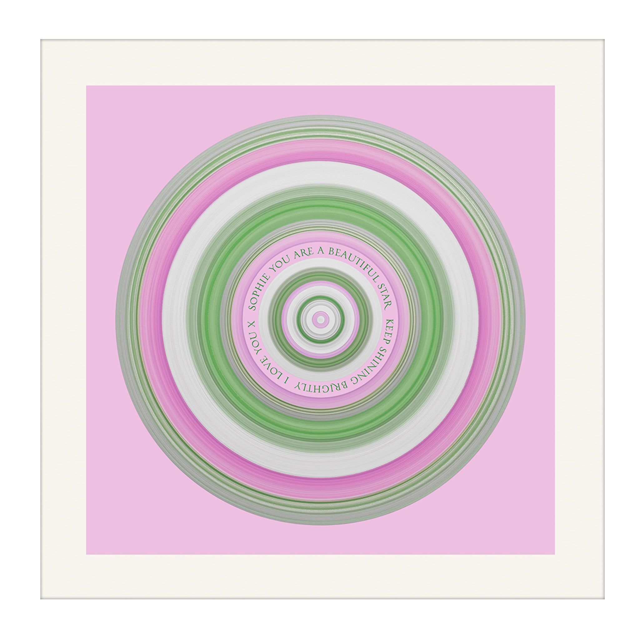 A softly radiant high-vibrational artwork in soothing pink, soft green and white - a colour palette chosen to amplify love, calm and heart-centred energy. Created to surround your loved one with the frequency of love. This edition includes your chosen name woven into the design with the message: