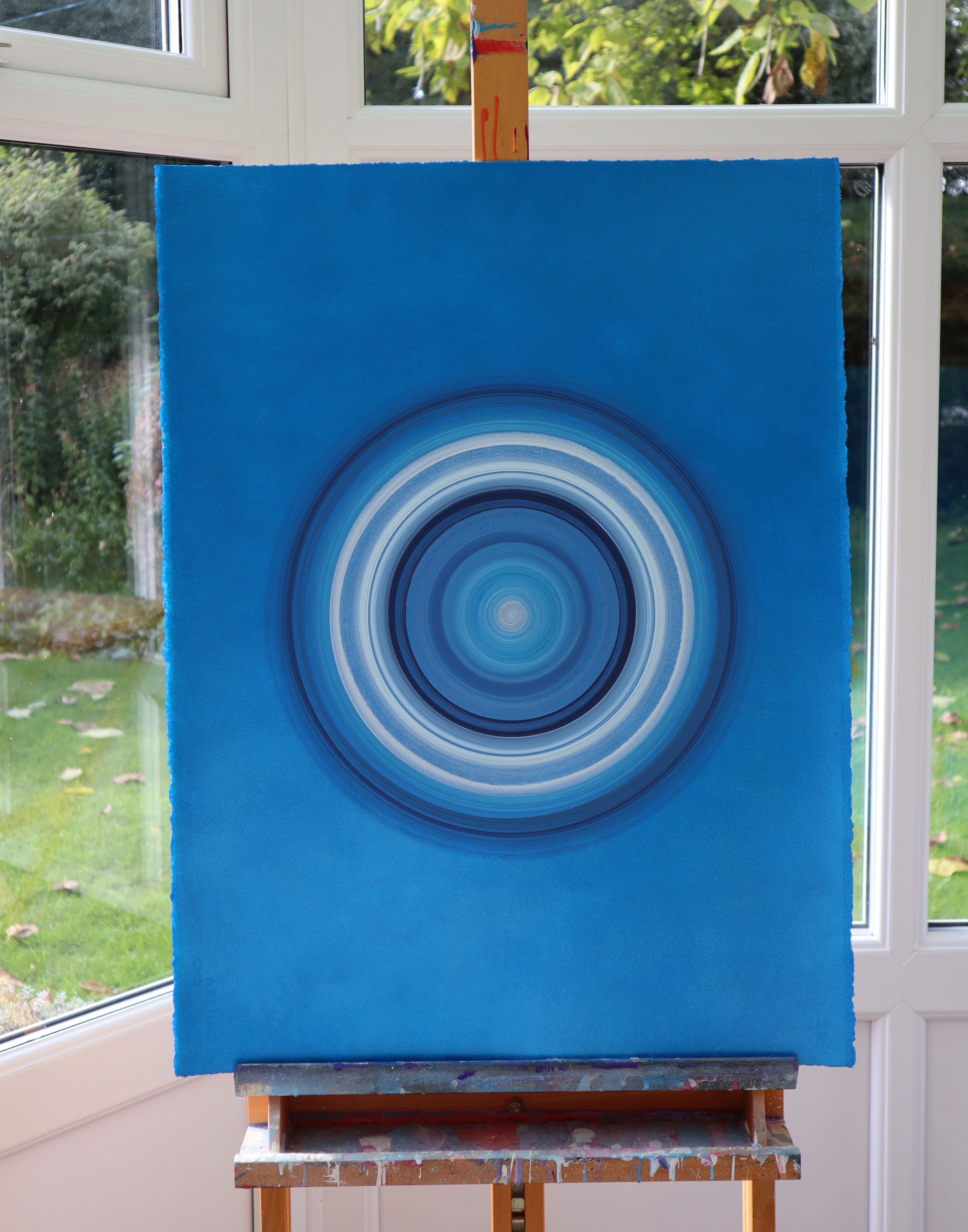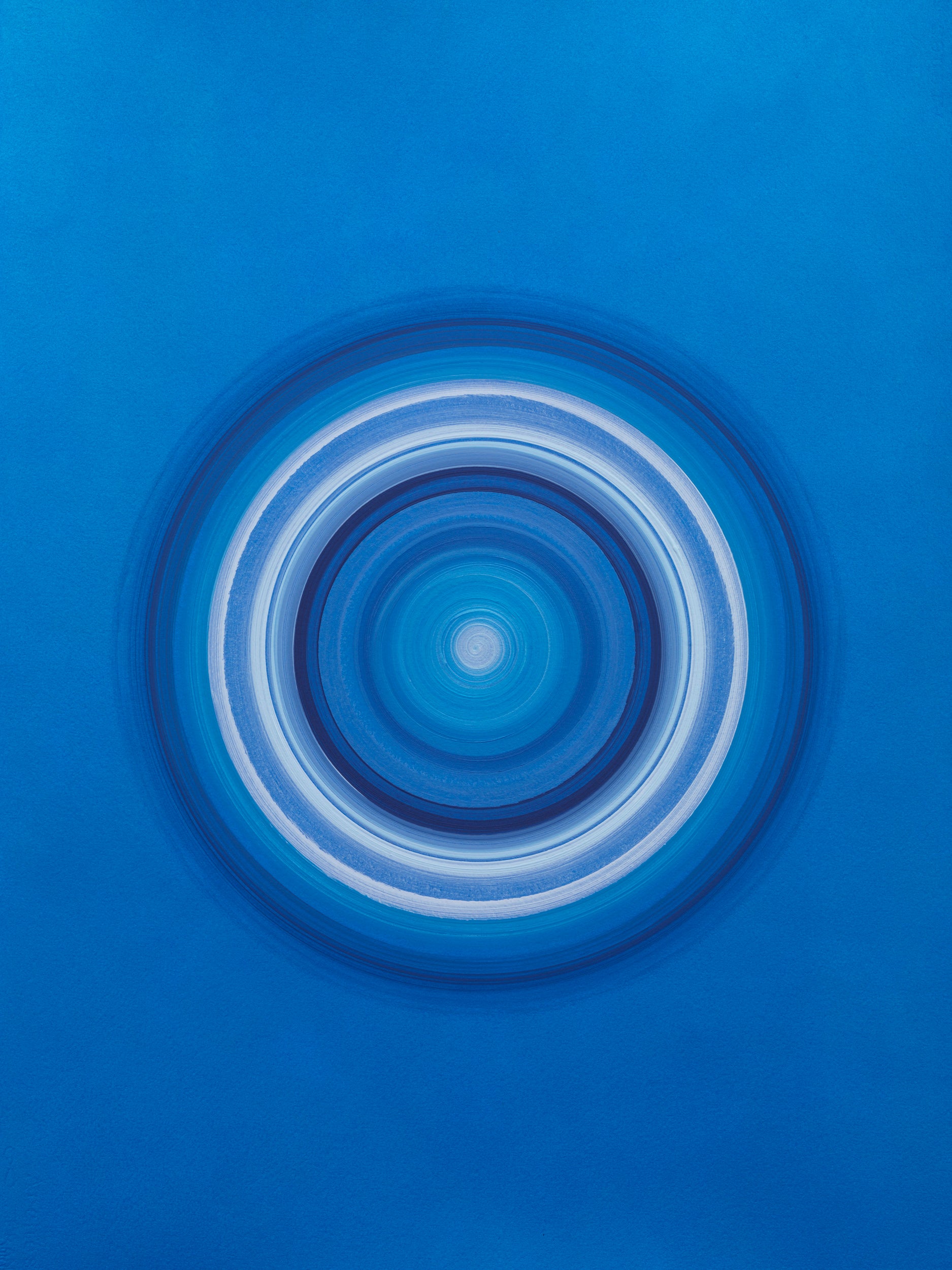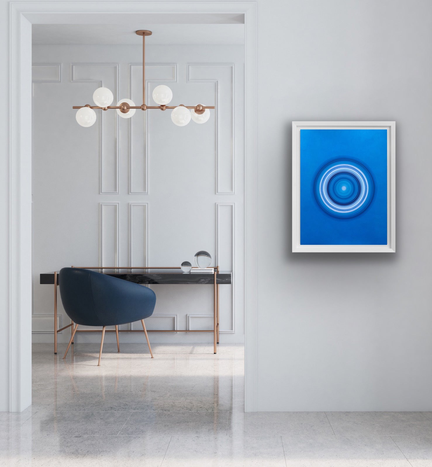 The background - a rich, mesmerizing deep blue - feels infinite, like gazing into the depths of the ocean or the vastness of the night sky, evoking a sense of wonder and introspection.