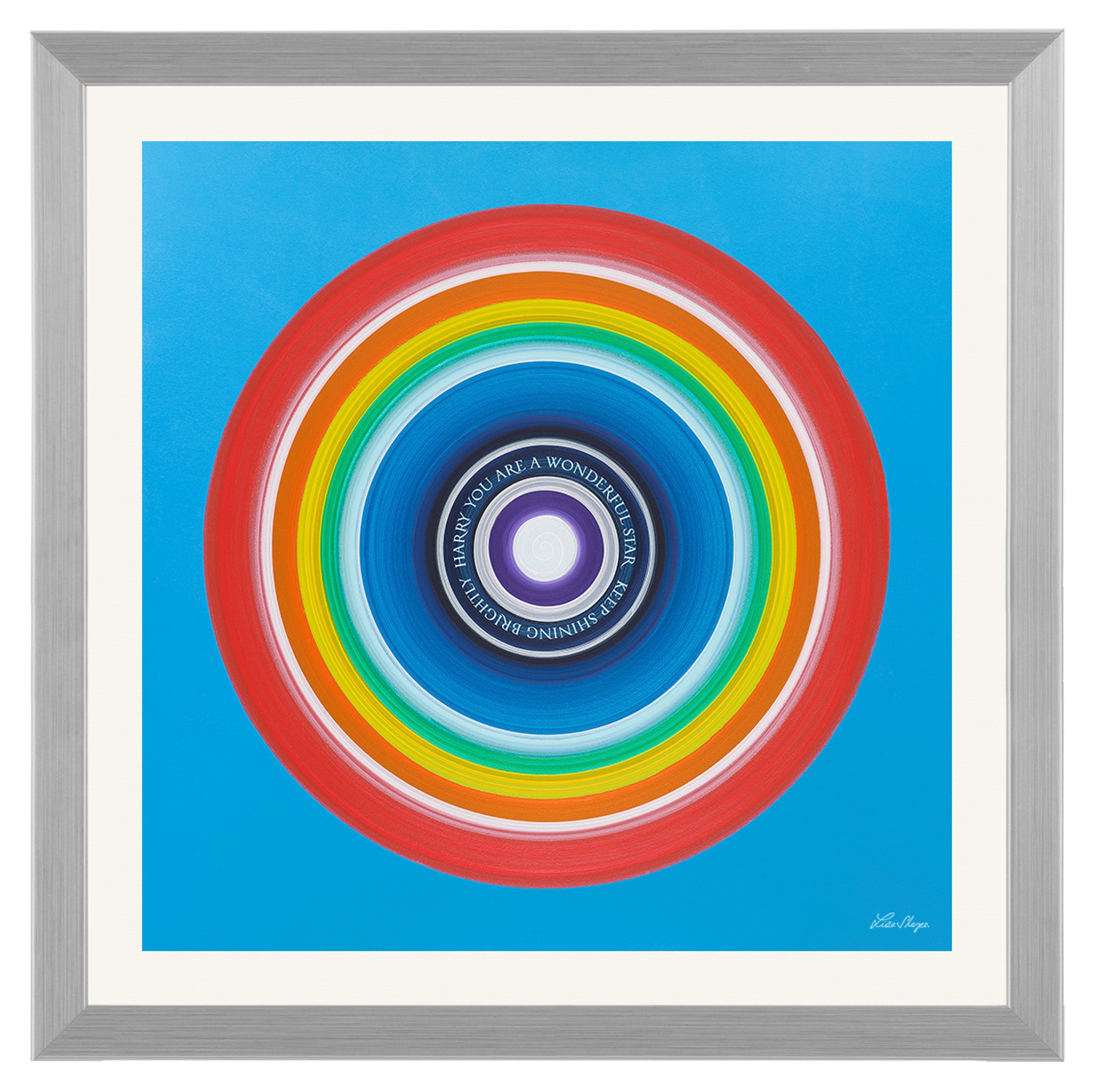 A vibrant high-vibrational artwork alive with rainbow colour, deep cobalt blue and radiant white — a palette chosen to amplify joy, confidence and the feeling of limitless possibility. Created to surround your loved one with uplifting, expansive energy every single day.