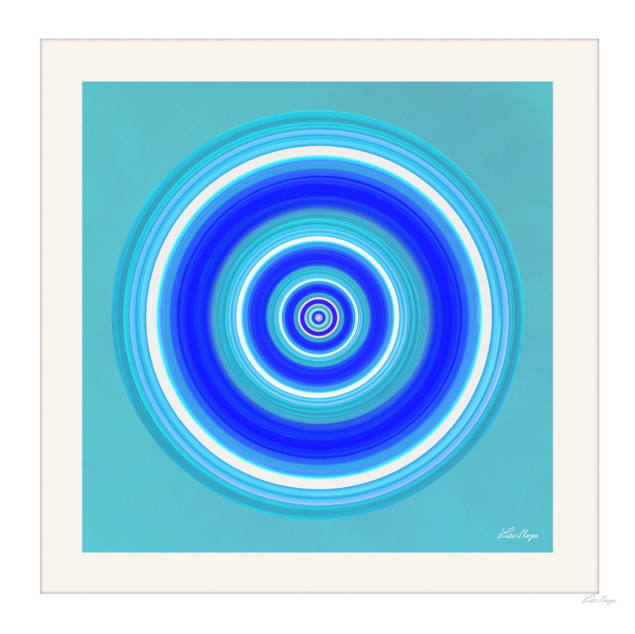 Radiance Rising III is an elevation of pure light energy. Layers of luminous blues and soft aqua build outward in expanding circles, creating the feeling of light rising from within, growing brighter with every ring. It holds the energy of clarity calm and upliftment, like standing beside the ocean on a clear day and feeling your whole being open.