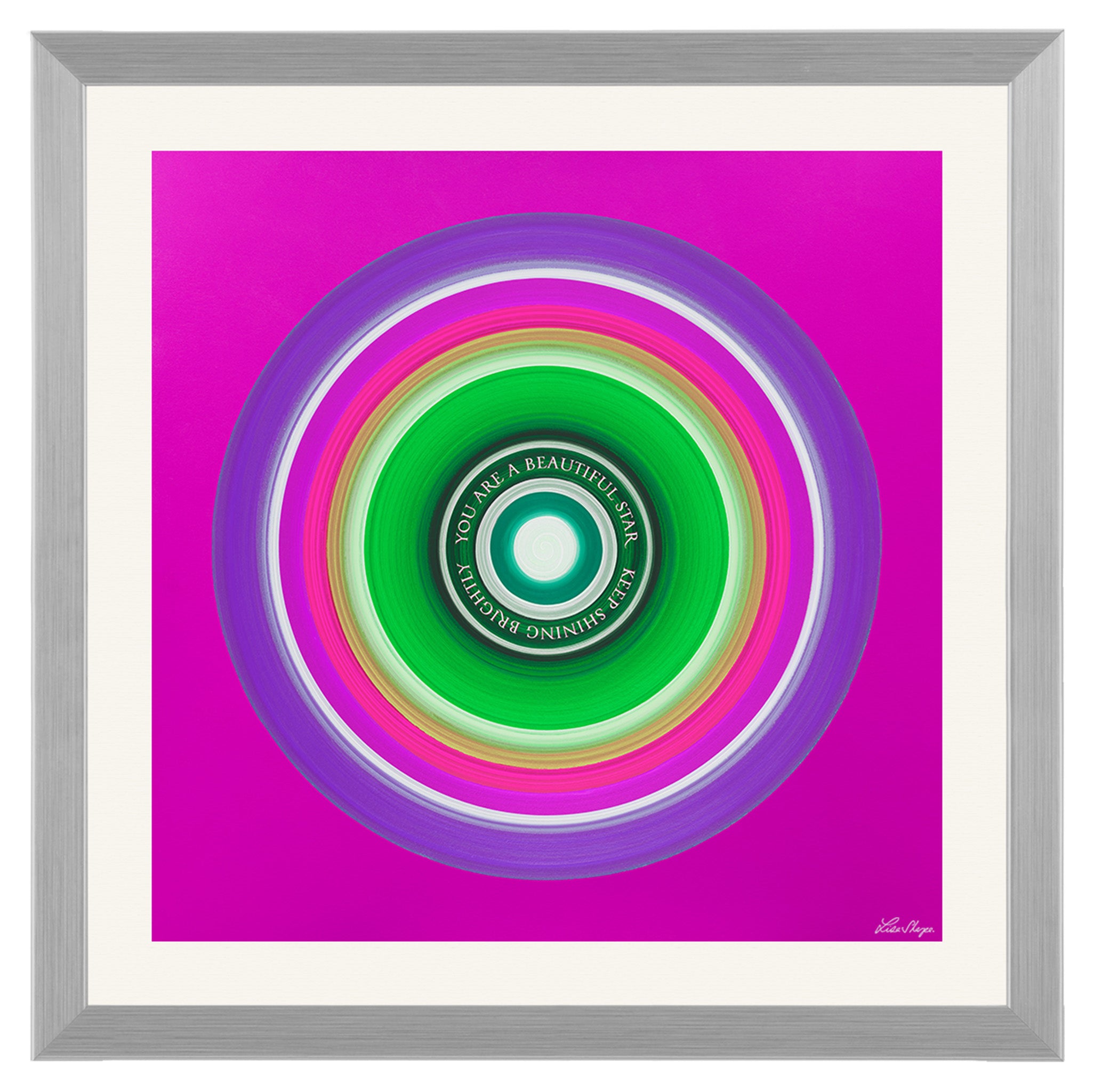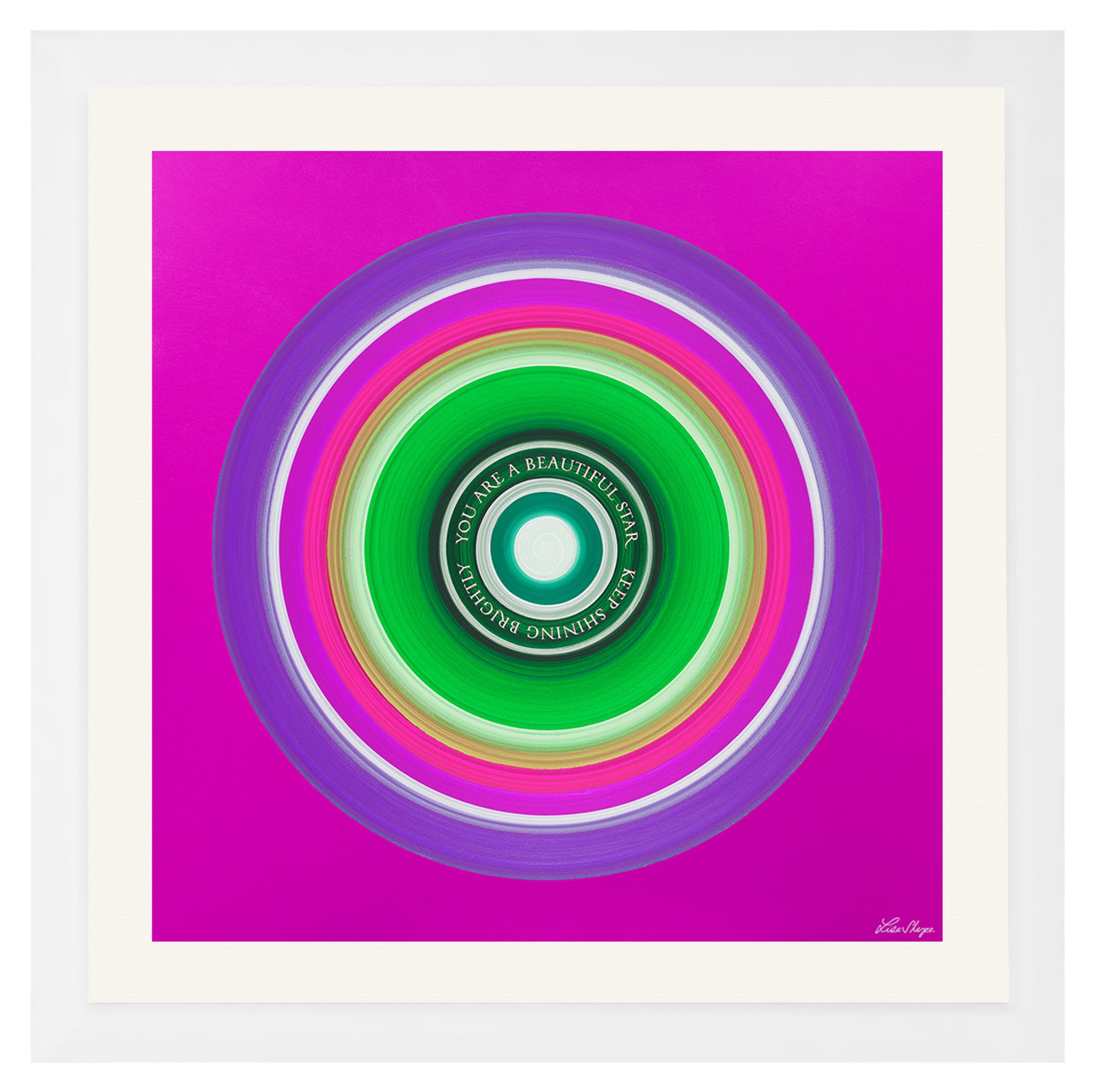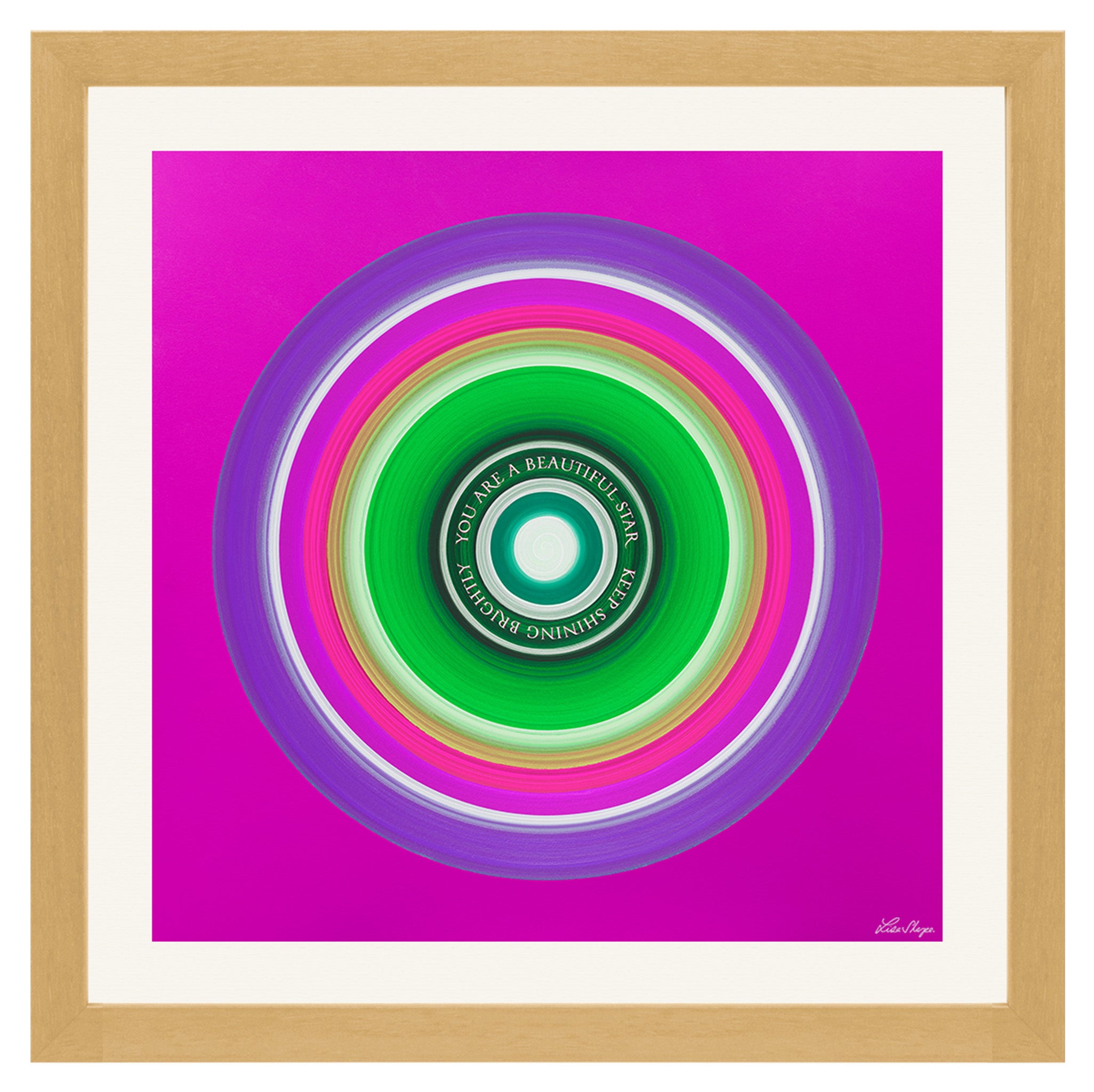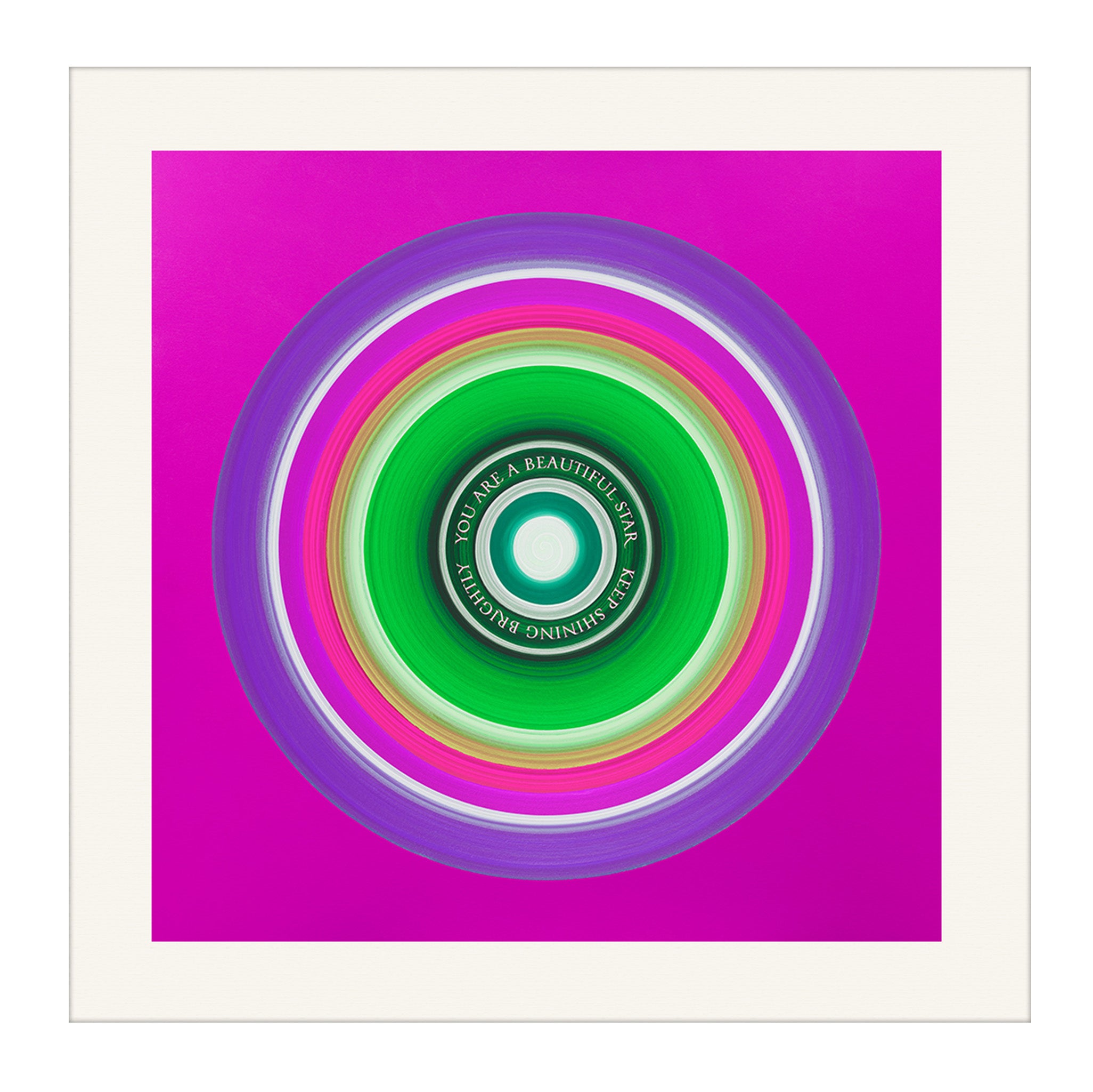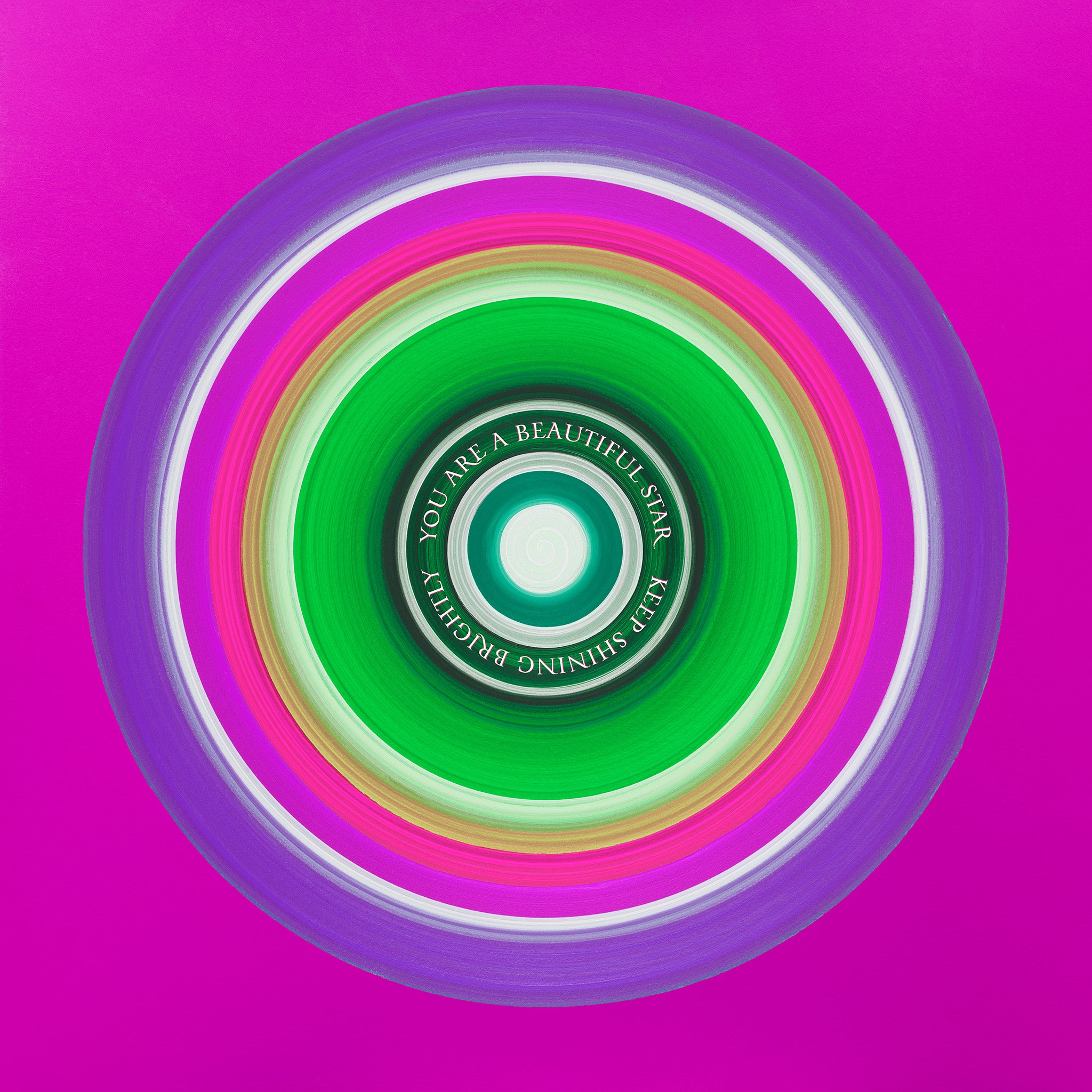 The colours move in smooth circular waves that feel energising supportive and full of encouragement. This artwork is designed as a loving reminder to keep shining brightly, to trust your inner light and to know that your presence in the world matters.